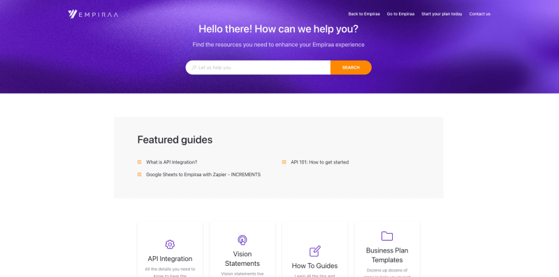 Lastly, we have a mega update with our Knowledge Base. This resource-rich database has tips and tricks about Empiraa, as well as all our Plan Templates, Objectives, Pillars, API, and more. It is your one-stop-shop for all things business planning. We believe that the more information you have at your fingertips, the more successful you will be, and we are committed to providing you with the best resources available.